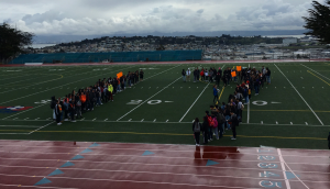 Students at Burton High School form the number 17 on the football field to commemorate the 17 people killed at Douglas High School in Parkland, Florida. Photo Credit: Asal Ehsanipour.