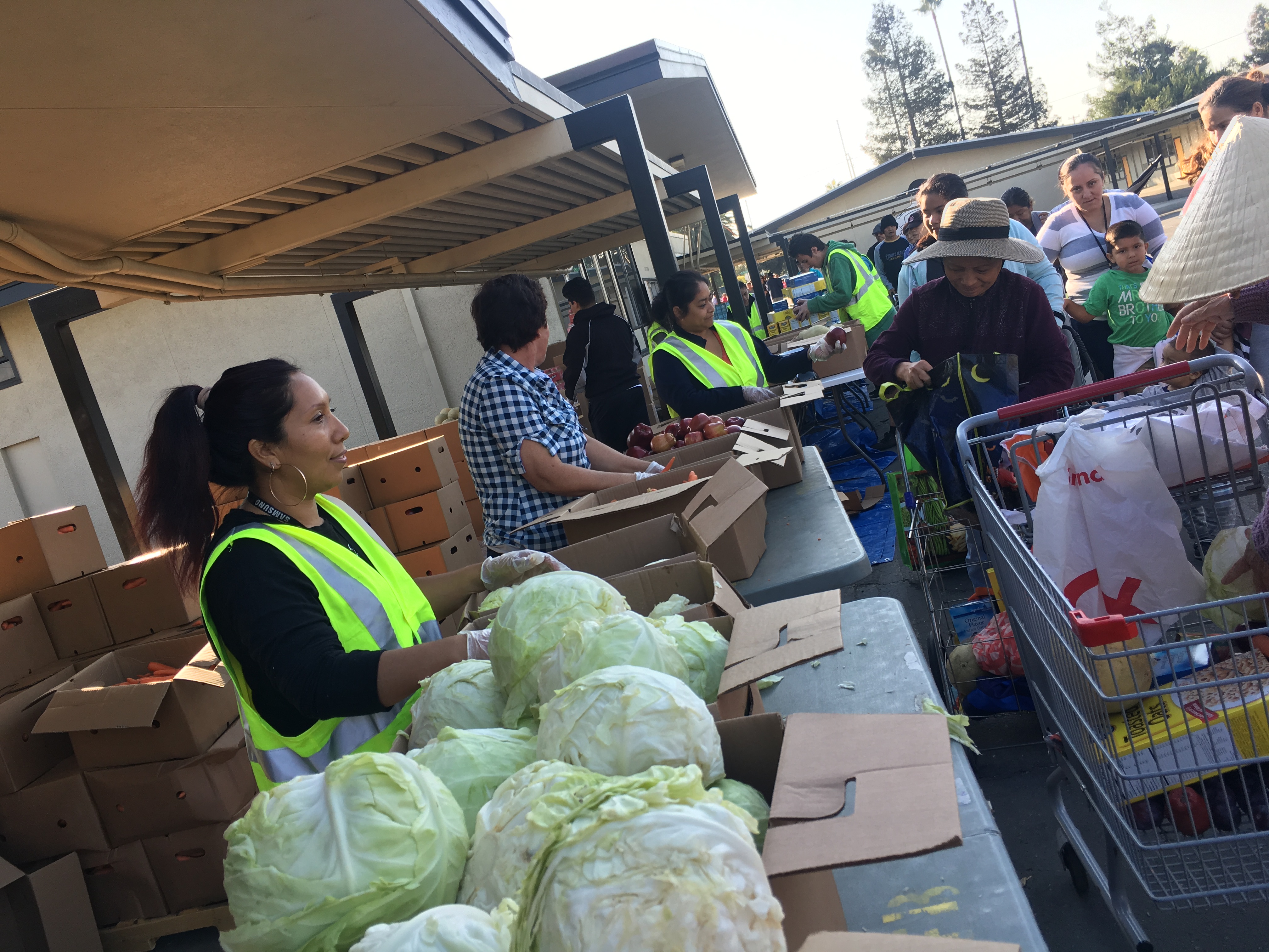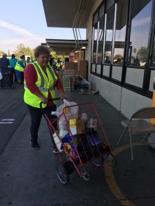 …and enjoying the Second Harvest Food Bank that delivers food to the community once a month, rain or shine.