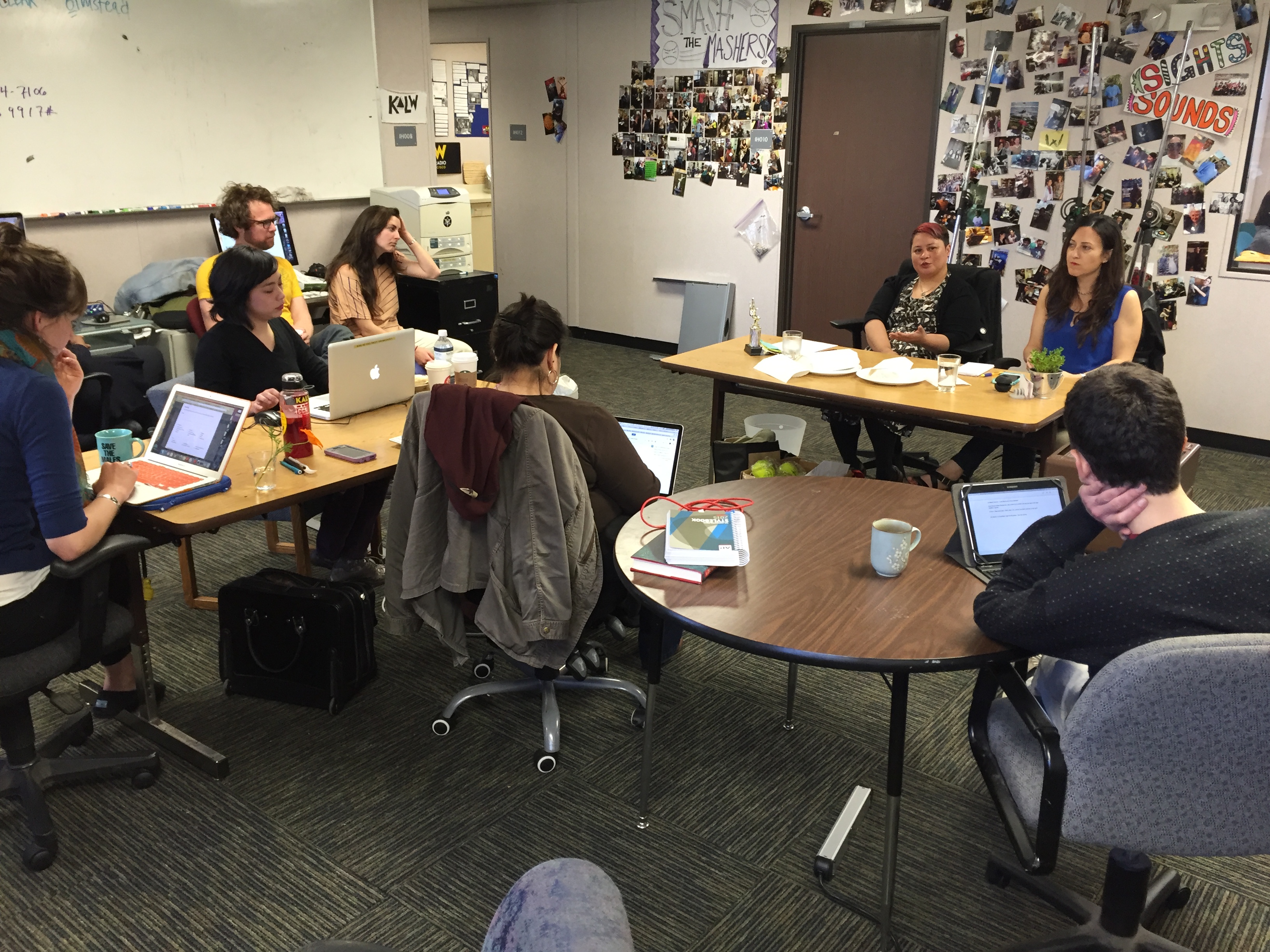 seminar on Wednesday. TCR is a great outlet for our students and staffers to pitch, because it’s locally-based at KQED public radio, but it’s got one of the largest reaches of any public radio news program, with outlets around the entire state carrying its daily and weekly program. We had a great conversation about the changing nature of what the audience wants, focusing on reporting with personality while retaining strict journalistic ethics, and it was really nice to connect with our colleagues at the Bay Area’s other NPR affiliate. Luisa Cardoza and Eli Wirtschafter pitched stories, and, as you may remember from another blog post, Eli has already had a story run on TCR.