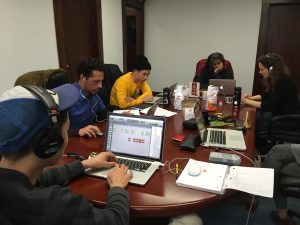 Finally, five members of our current Audio Academy class took advantage of a weekend tutorial in the audio editing program ProTools led by mentors Julie Caine and Jen Chien. Check out the picture of Jeremy Jue, Josiah Luis Alderete, Boawen Wang, Greer McVay and Claire Stremple hard at work! They’re learning!