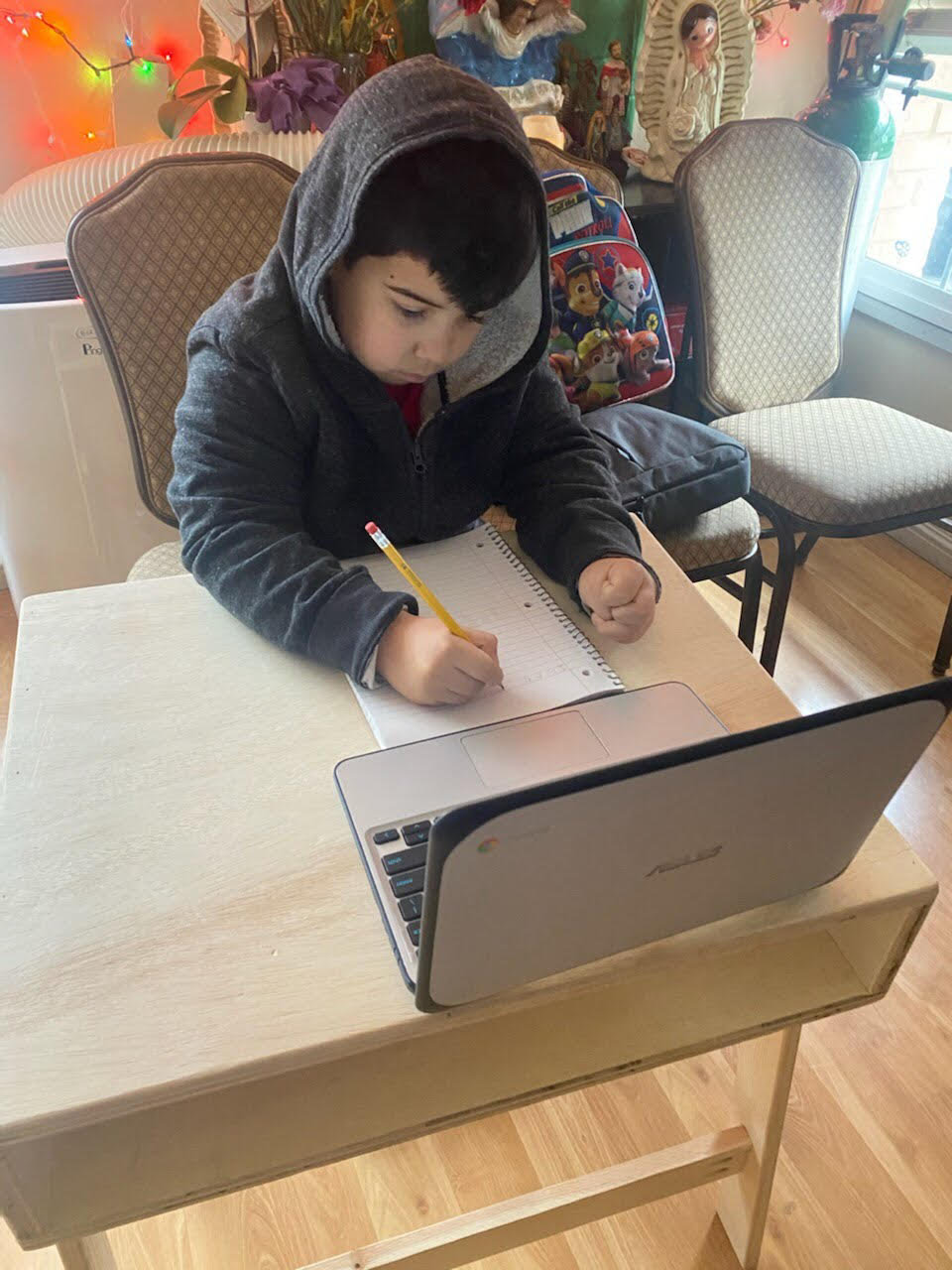 “We saw how much students were struggling and finding a reasonable place to do the learning work was one issue,” said Alejandro Espinoza, Parent Learning Center Lead. “Thanks to a colleague, we made a connection with a community member who was building desks to support students engaging in virtual learning.”