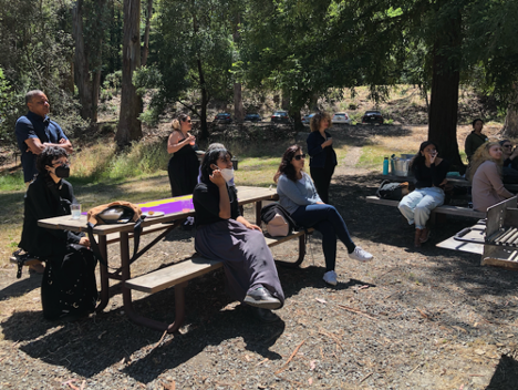 Here are a few pics from their graduation, including this one of a bunch of people in Tilden Park listening to a mentor sharing some thoughts: