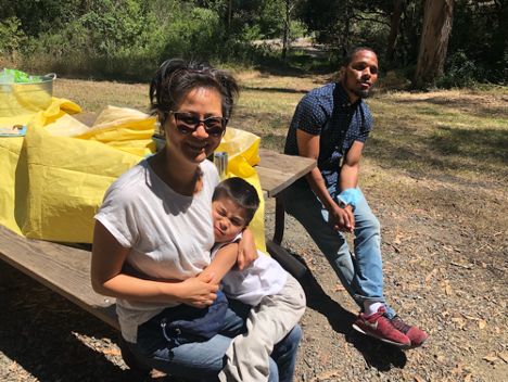 KALW Public Media board member Kyung Jin, her son Ha Jin, and graduate D’Andre: