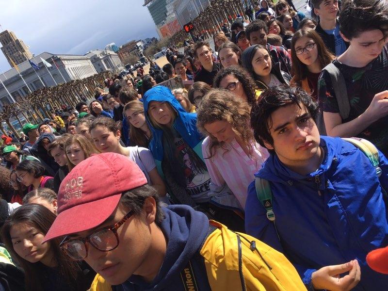 High school students from throughout San Francisco converge at City Hall. Photo Credit: Kyle Trefny.