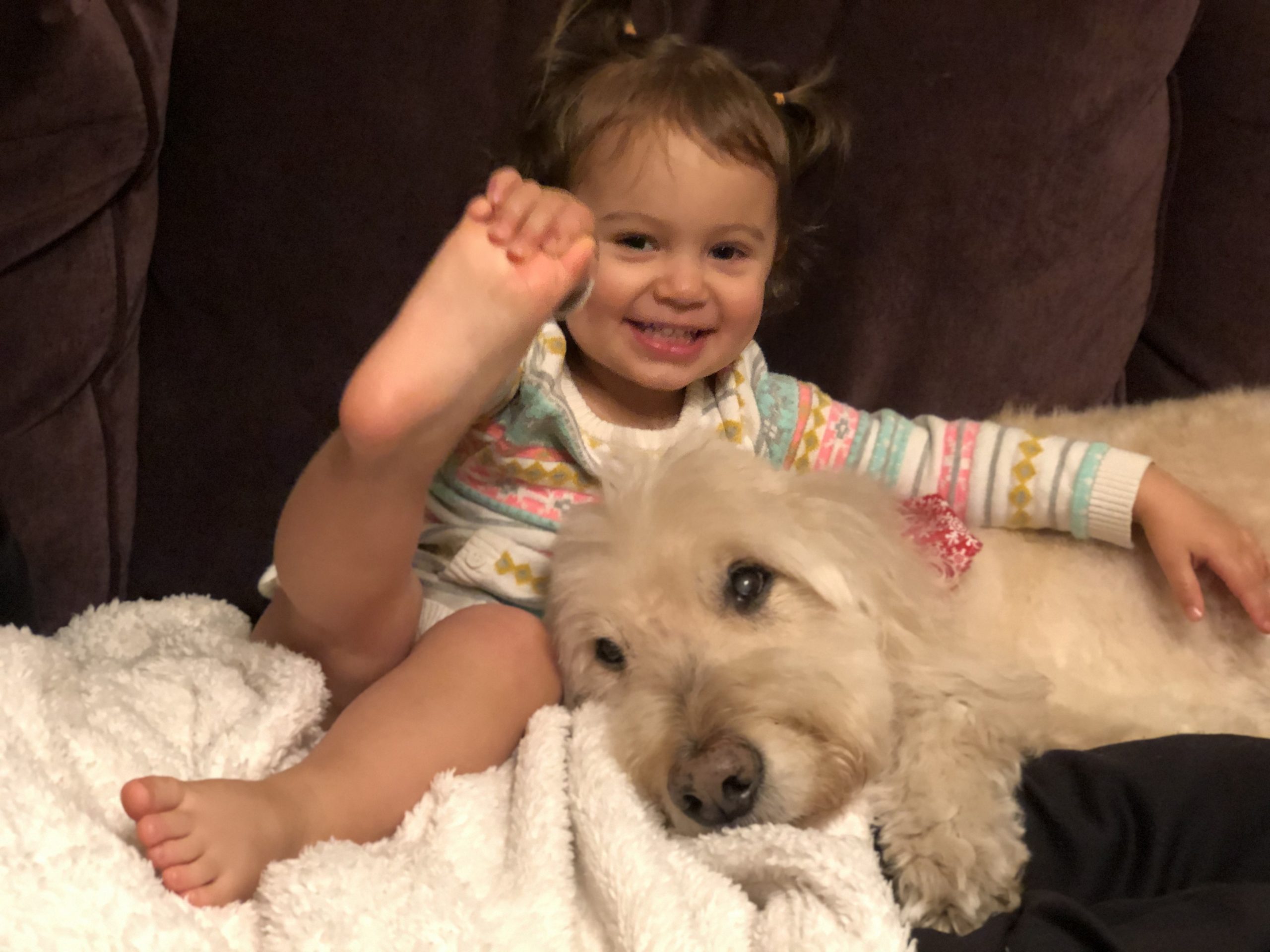 Lucy is showing off her cinquains, her five toes, her special kind of poetry.