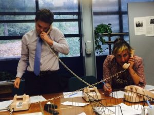 Just call and donate. You know you want to. You know you need to. Here, Jack Detsch (’15) and Alexis Luna-Torres answer phones during a KALW membership drive.